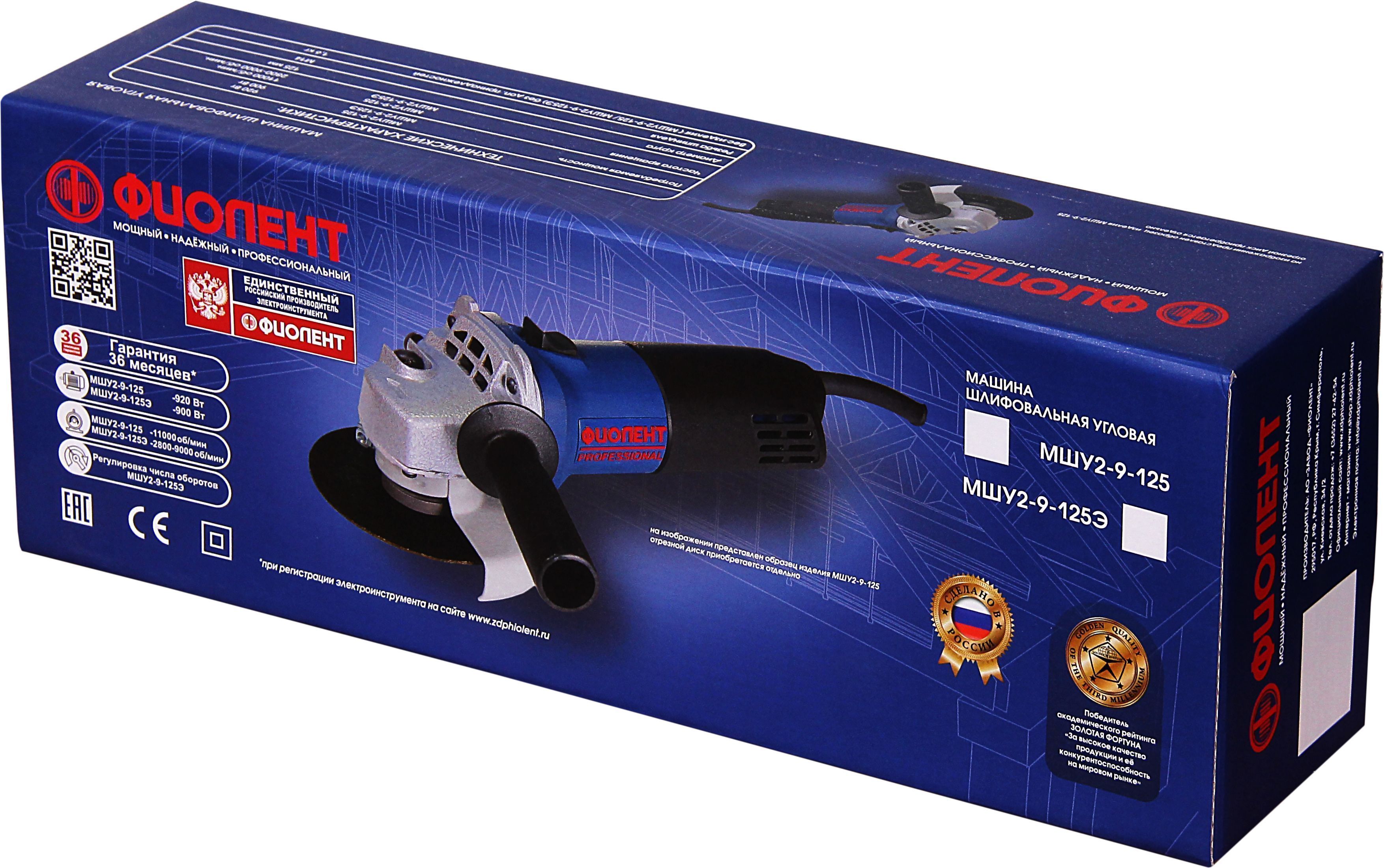 Углошлифовальная машина Фиолент одноручная МШУ2-9-125 в продаже по цене 3 945 руб. в Интернет-магазине Проф-инструмент с доставкой в Казани и Татарстане. Звоните по телефону +8 (800) 302-10-51.