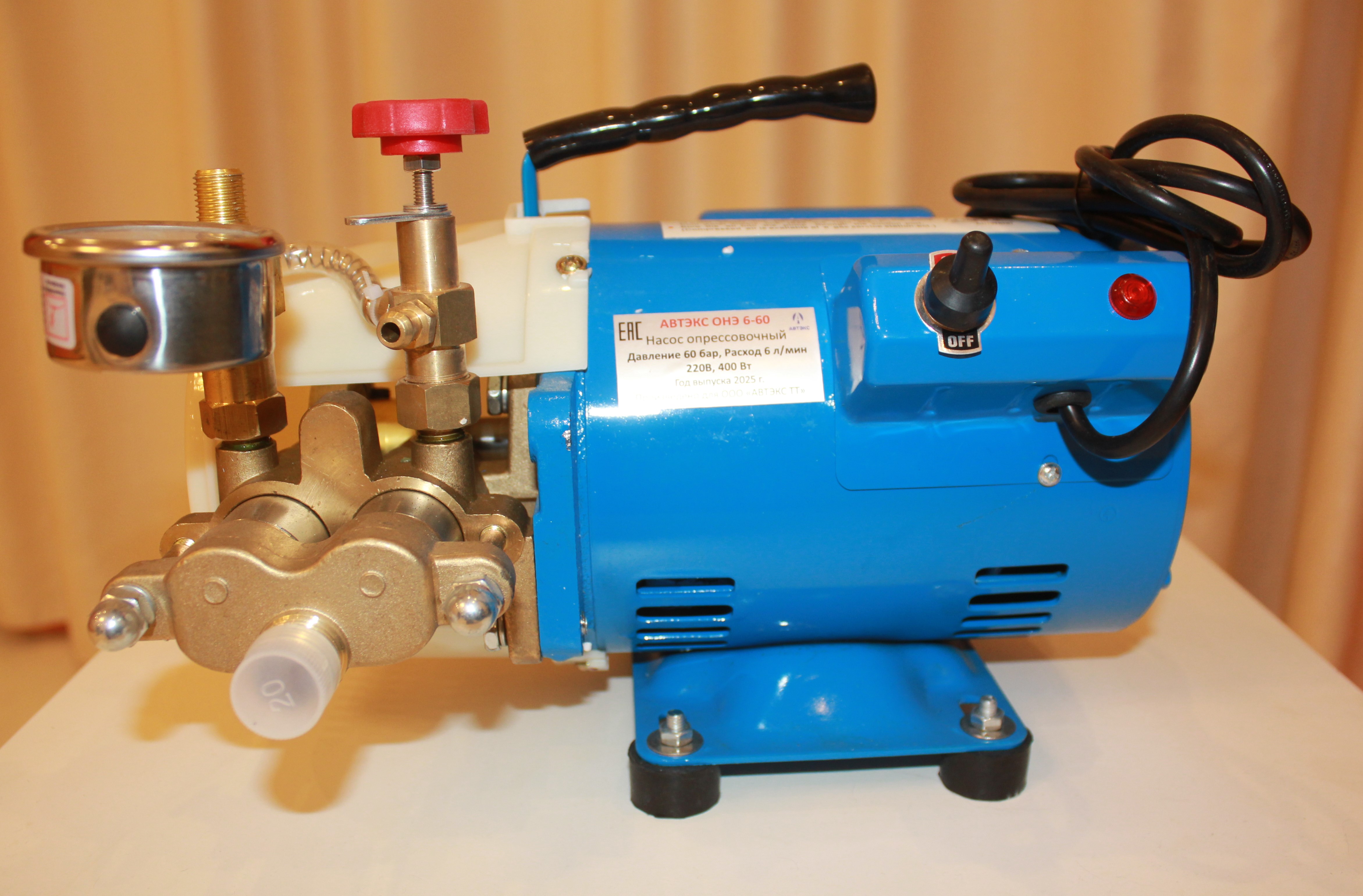 - Насос испытательный электрический «АВТЭКС» ОНЭ-6-60 в сборе;