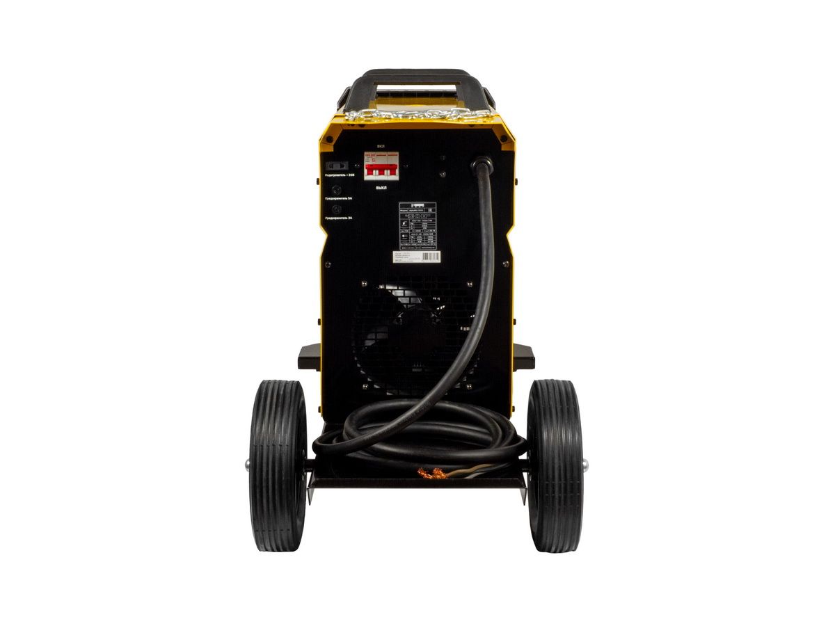 - Высокая мощность и сварочный ток до 500A позволяют использовать проволоку от 0,8 до 1,6 мм и электроды диаметром до 5 мм