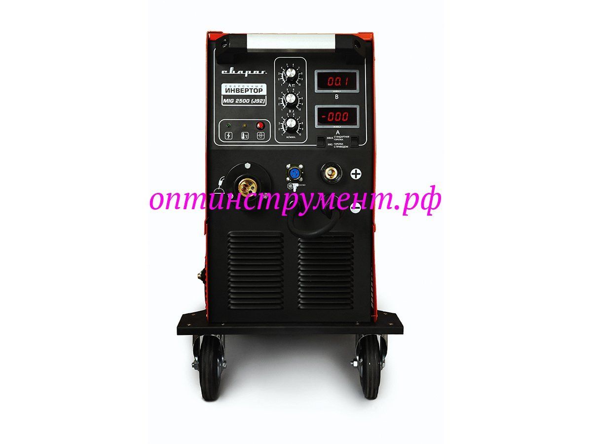 Модель серии STANDART MIG 2500 (J92) предназначена для механизированной сварки в среде защитного газа (MIG/MAG) и ручной дуговой сварки покрытым электродом (ММА). Режим обратной полярности позволяет также осуществлять сварку порошковой проволокой (FCAW) без защитного газа. Для удобства использования аппараты оснащены тележкой с поворотными колесами, на которую также устанавливается баллон с газом.