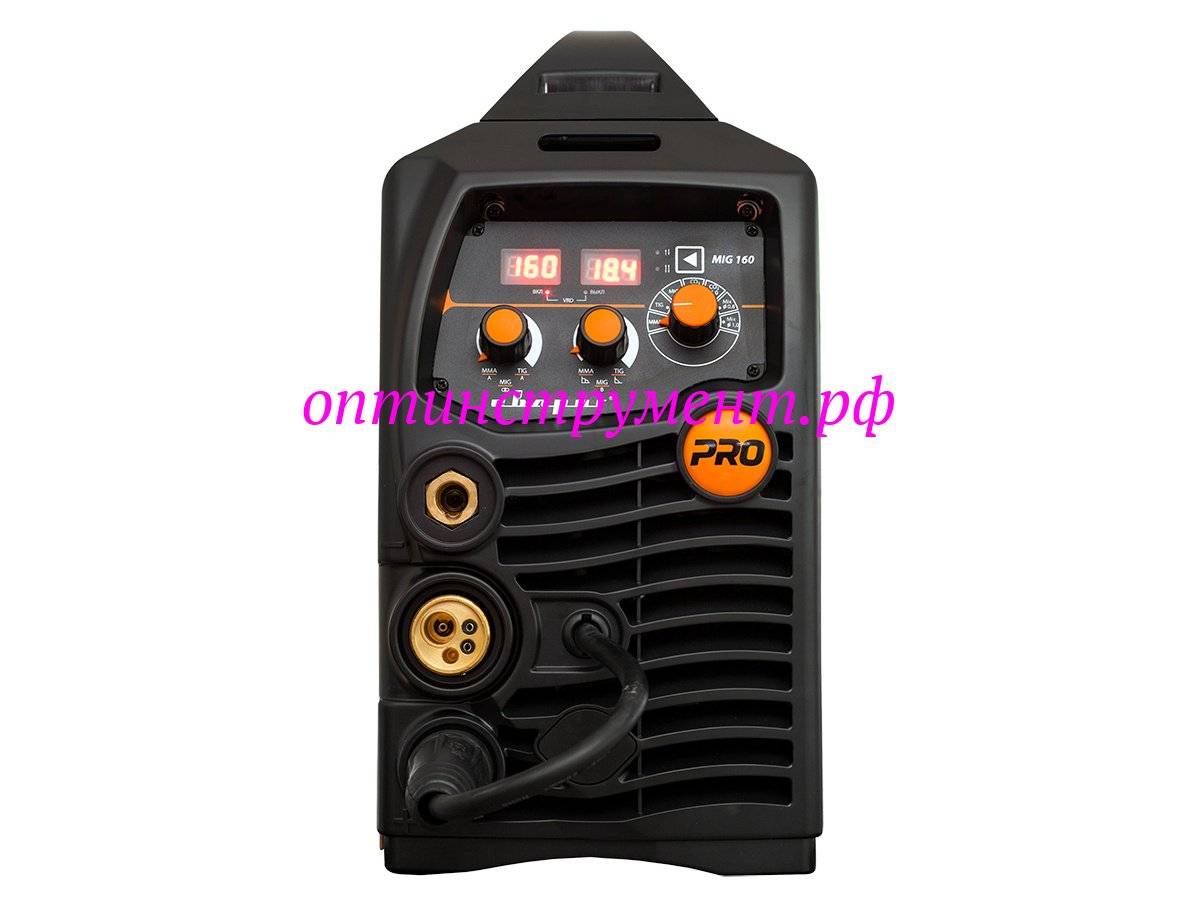 Аппарат серии PRO MIG 160 (N227) предназначен для полуавтоматической сварки в среде защитных газов (MIG/MAG), сварки порошковой проволокой (FCAW), а также ручной дуговой сварки покрытым электродом (ММА) и аргонодуговой сварки (TIG).