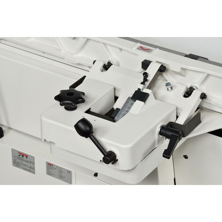 JJ-866 новый фуговальный станок Jet профессионального класса с шириной строгания 200 мм, оборудован длинными массивными чугунными столами. Может в качестве опции комплектоваться строгальным валом helical, который незаменим при работе с твердыми породами, по древесине с сучками и просто при интенсивной эксплуатации.