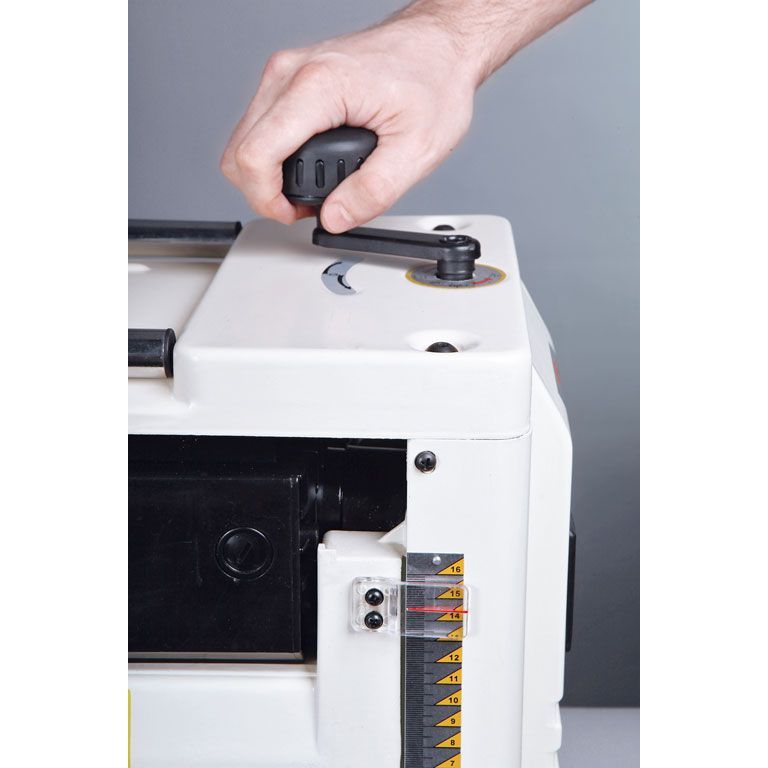 - Регулировка высоты строгания вращающейся рукояткой