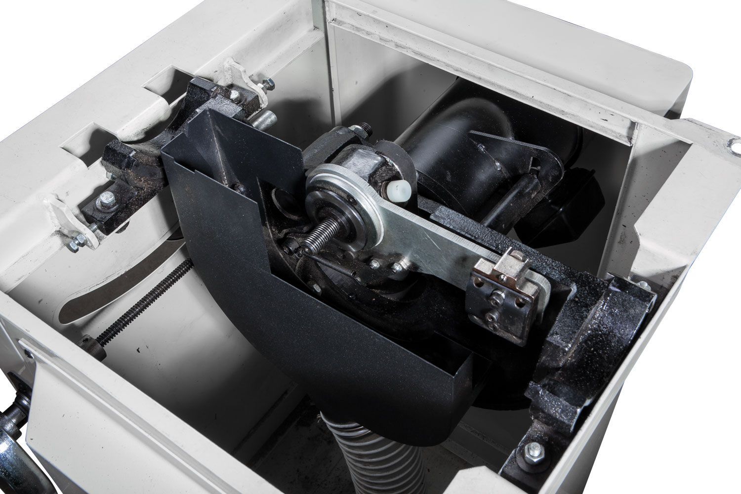 Штатная комплектация включает в себя два чугунных расширителя и параллельный упор с фторопластовыми накладками и эксцентриковой фиксацией на 50-дюймовых направляющих. Все ответственные детали выполнены из массивных чугунных отливок, регулировки высоты и наклона диска производят крупными маховиками, предусмотрена возможность точной юстировки его крайних положений. Такое оснащение, характерное для более дорогих моделей, само по себе делает JTS-250CSX выгодным приобретением. Но есть и другие преимущества: к примеру, конструкция пильного модуля позволяет устанавливать дисковую пазовую фрезу Dado (поставляется за отдельную плату). Для расширения возможностей при работе с этим комплектом доступно в качестве опции шипорезное приспособление. Это зажим для заготовок с возможностью перемещения вдоль Т-образного паза.